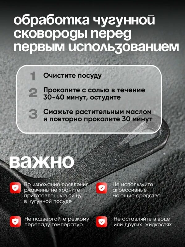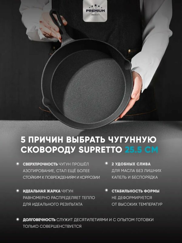 Эта сковорода выдерживает высокие температуры и сохраняет свои свойства долгие годы.