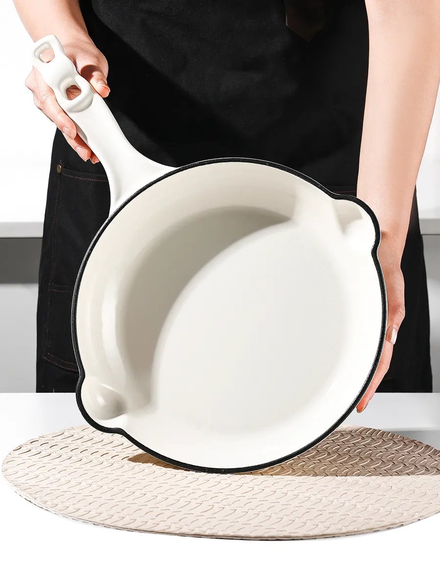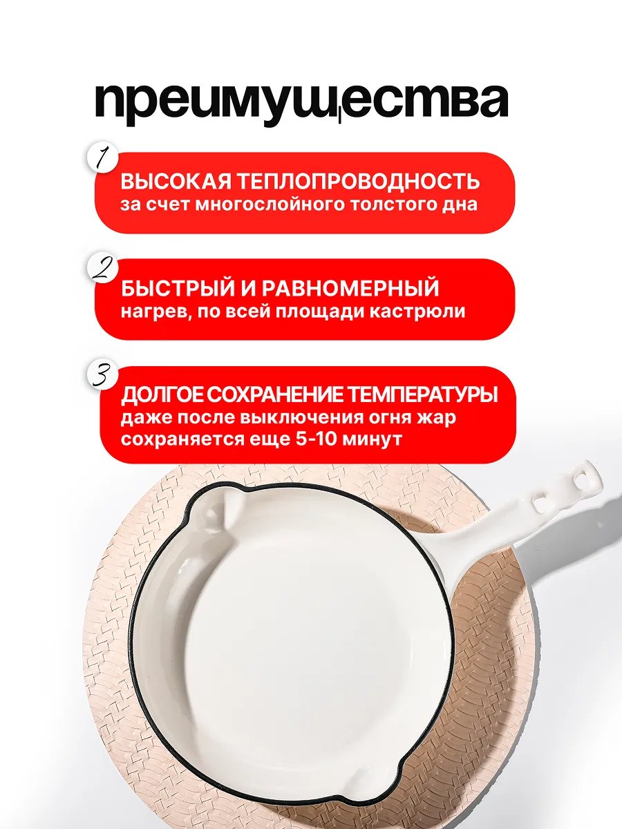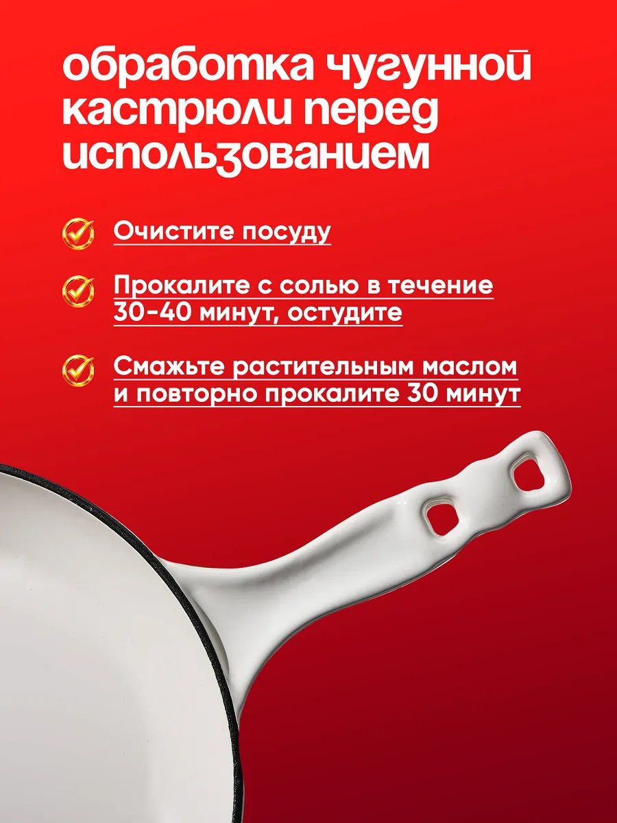 Такая сковорода подходит для жарки мяса и рыбы, тушения овощей, приготовления супов и запекания блюд в духовке. Чугун равномерно прогревается по всей поверхности, долго держит тепло и помогает готовить без спешки и постоянного контроля. А эмалированное покрытие упрощает уход, не впитывает запахи и позволяет готовить разные блюда без смешения вкусов.