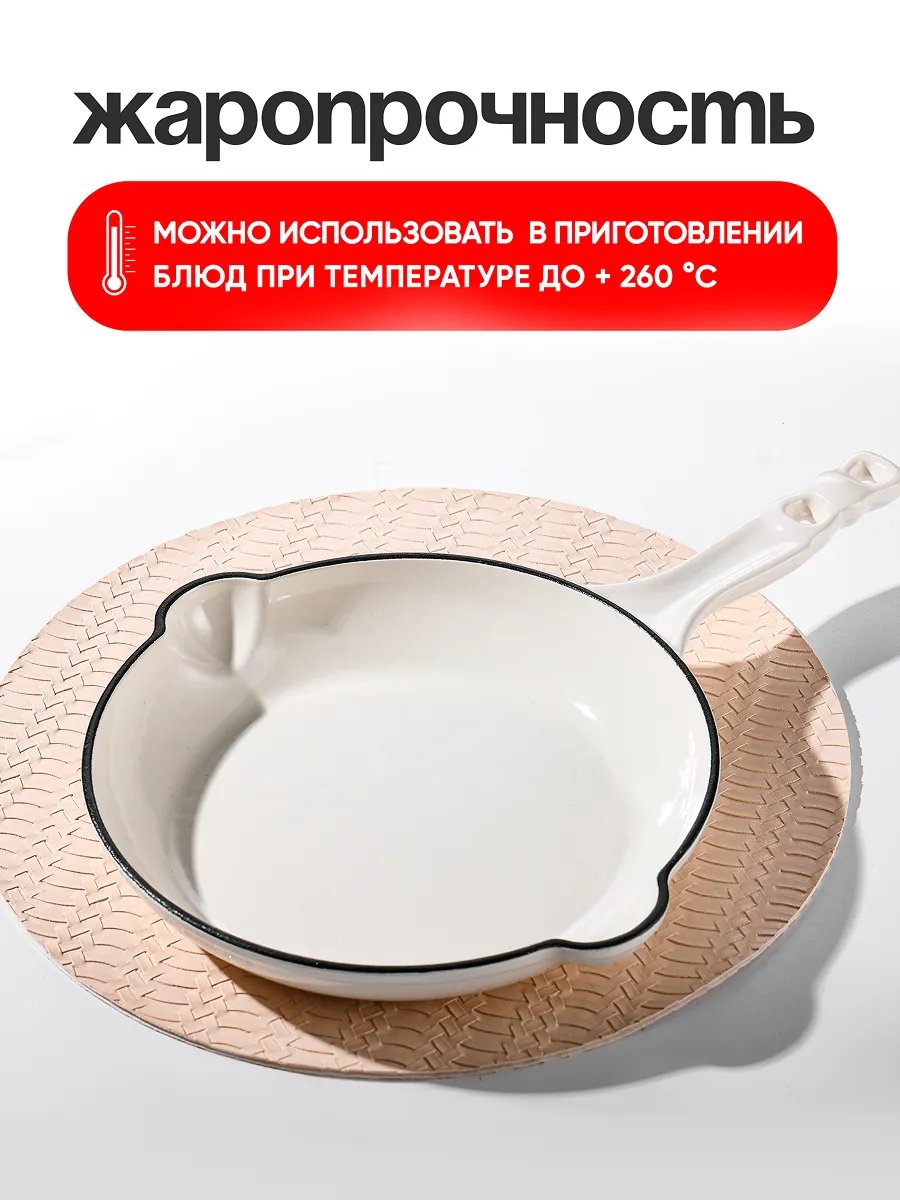 Сковорода чугунная антипригарная с эмалированным покрытием, 26 см – это универсальная посуда для плиты и духовки и практичный выбор для вашей кухни.