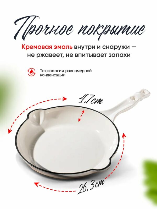- Комплектация: эмалированная чугунная сковорода 26 см