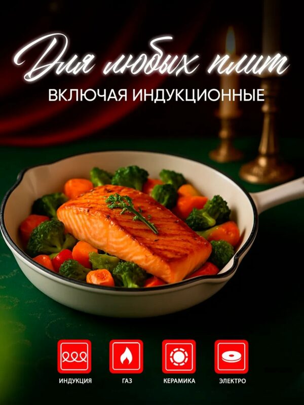 - Совместимость: газ, электричество, керамика, индукция