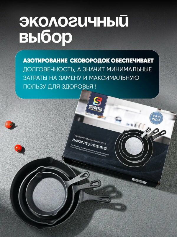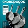 - Практичность: не нужно покупать разные сковороды отдельно — всё уже в комплекте.