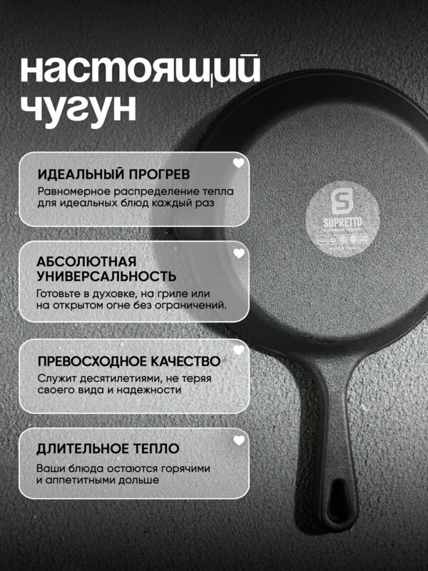 - Единые свойства чугуна: одинаковая теплопередача и антипригарность.