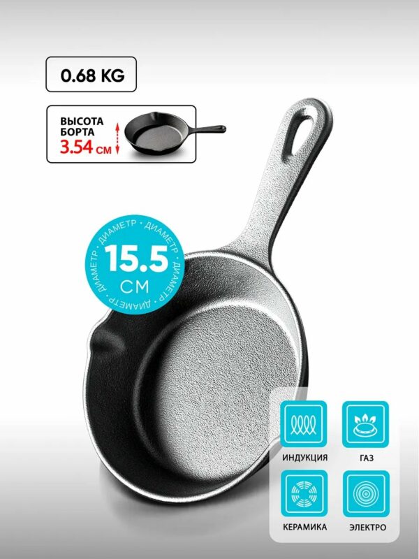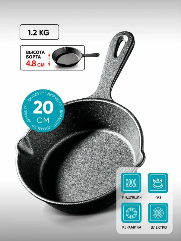- Размеры: 15.5 см (борт 3.54 см), 20 см (борт 4.8 см, вес ~1.2 кг), 25.5 см (борт 5.4 см, вес ~1.85 кг)