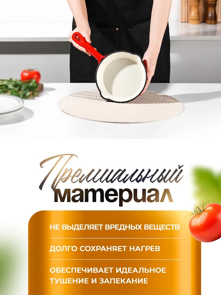 Круглая форма равномерно распределяет тепло по всей поверхности дна и стенок.