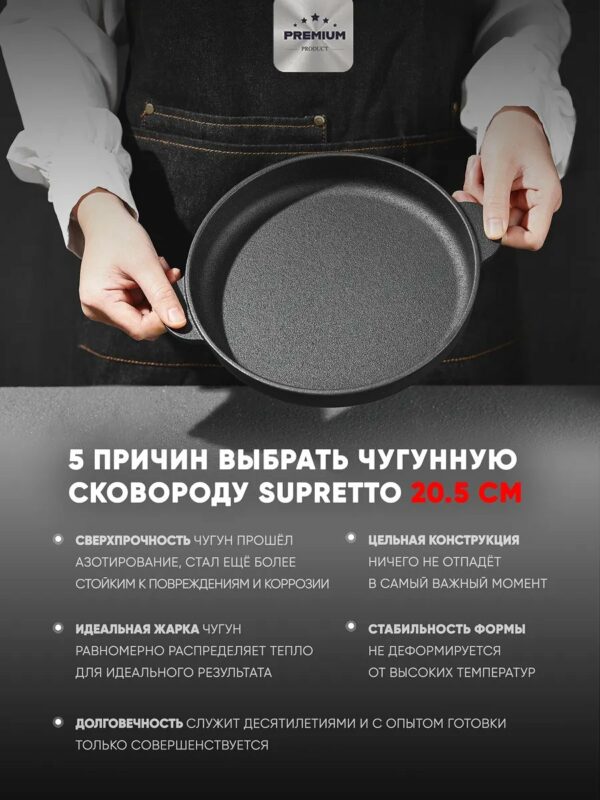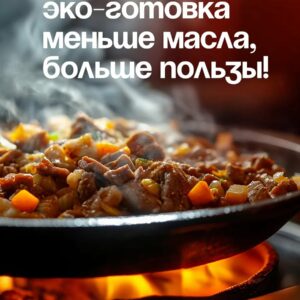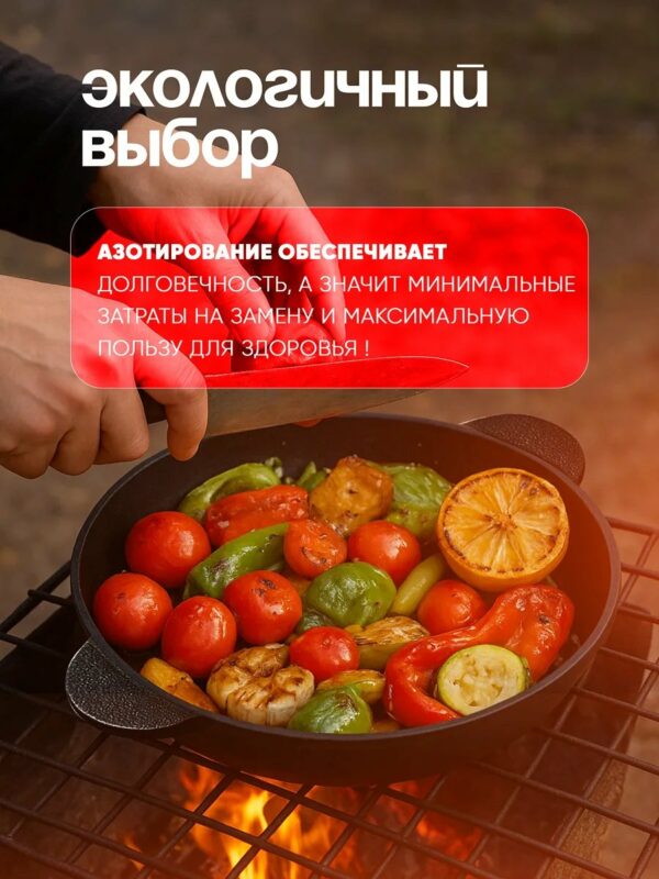 - Натуральная антипригарность — слой «растёт» с опытом. Готовьте с минимумом масла, без химических покрытий.