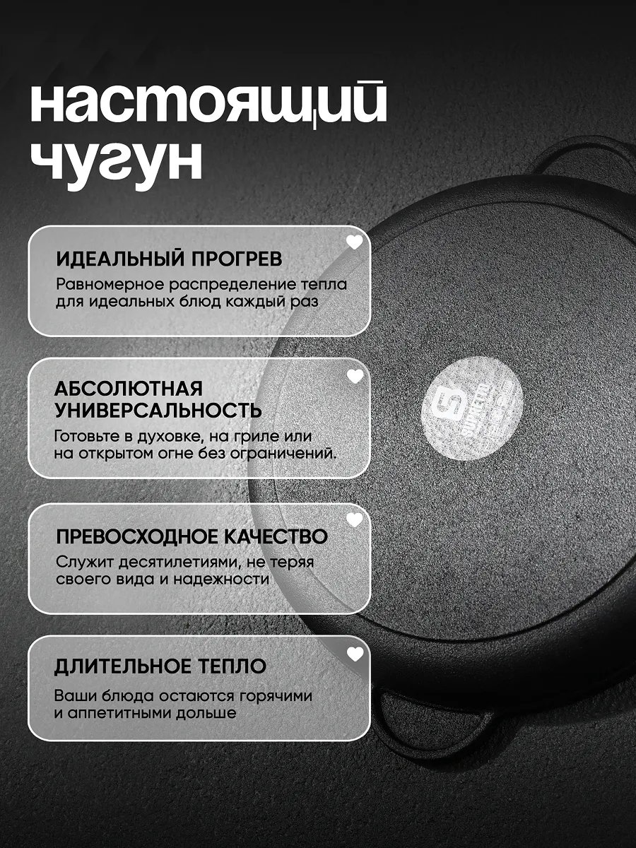 - Внутреннее покрытие: чугун (натуральная антипригарность)